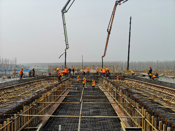 余寒漸消,大地春回,匯通公司沭陽快速路二期(威海路段)工程全面吹響項目建設(shè)大干號角。 沭陽縣城區(qū)快速路二期工程施工圖設(shè)計威海路(臺州路-義烏路),全長4.162千米,造價4.65億元,起點順接現(xiàn)狀威海路(臺州北路交叉口西側(cè)),向東沿沂南河大堤至義烏路后折向南,終點位于蕭山路交叉口。快速主線采用雙向六車道;兩側(cè)地面輔道采用雙向4車道,主線上跨橋上部結(jié)構(gòu)采用預(yù)應(yīng)力連續(xù)梁,全長1406.9米,橋面寬25.5米,單箱三室斜腹板箱梁,下部結(jié)構(gòu)采用“H”型框架墩,群樁基礎(chǔ)。本項目的建設(shè)是沭陽中心城區(qū)的主干路“十橫十縱”結(jié)構(gòu)的重要一環(huán),有利于完善快速交通功能、促進綜合交通體系發(fā)展、推動地區(qū)經(jīng)濟發(fā)展、提升
