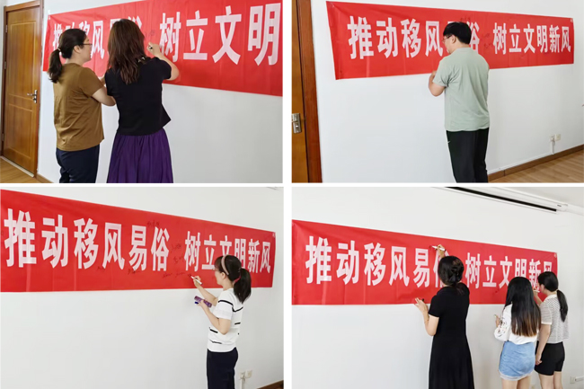 活動現場,大家踴躍發言,就文明婚俗、現代婚慶等話題進行溝通交流。交流過程中,職工們講述家鄉的婚禮風俗,發表不同觀點,號召摒棄大操大辦、低俗鬧婚等陳規陋習,積極提倡婚事新辦、簡辦的婚戀觀,贏得了在場職工的認可和稱贊。同時,工作人員為職工發放《破處婚俗陋習樹立文明新風倡議書》,大家紛紛在宣傳條幅上簽名。